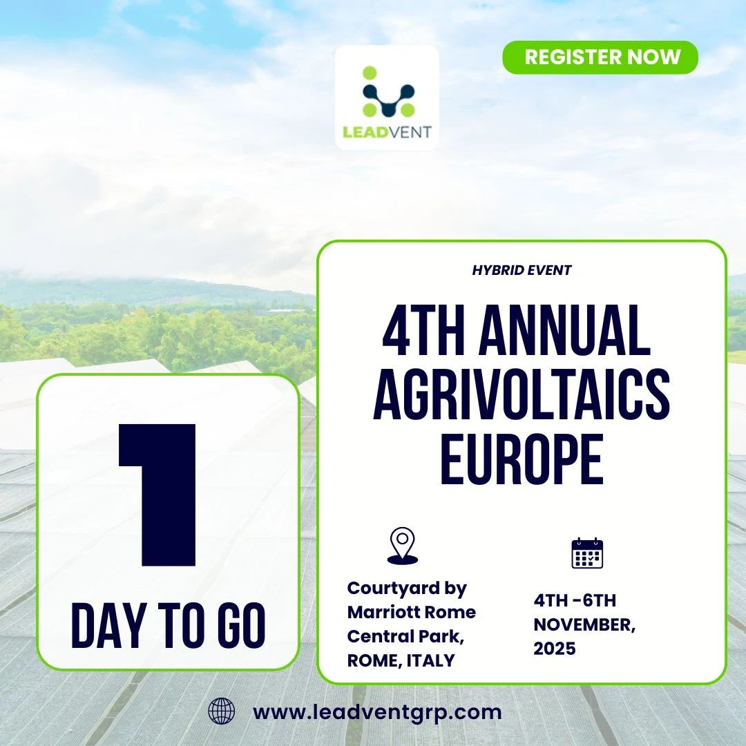 ⏰ Are You Ready! Only 1 DAY until the 4th Annual Agrivoltaics Europe where global leaders, innovators share thoughts on how they can work side by side in harmony. and with clean, modern visuals and meaningful conversatiRead More